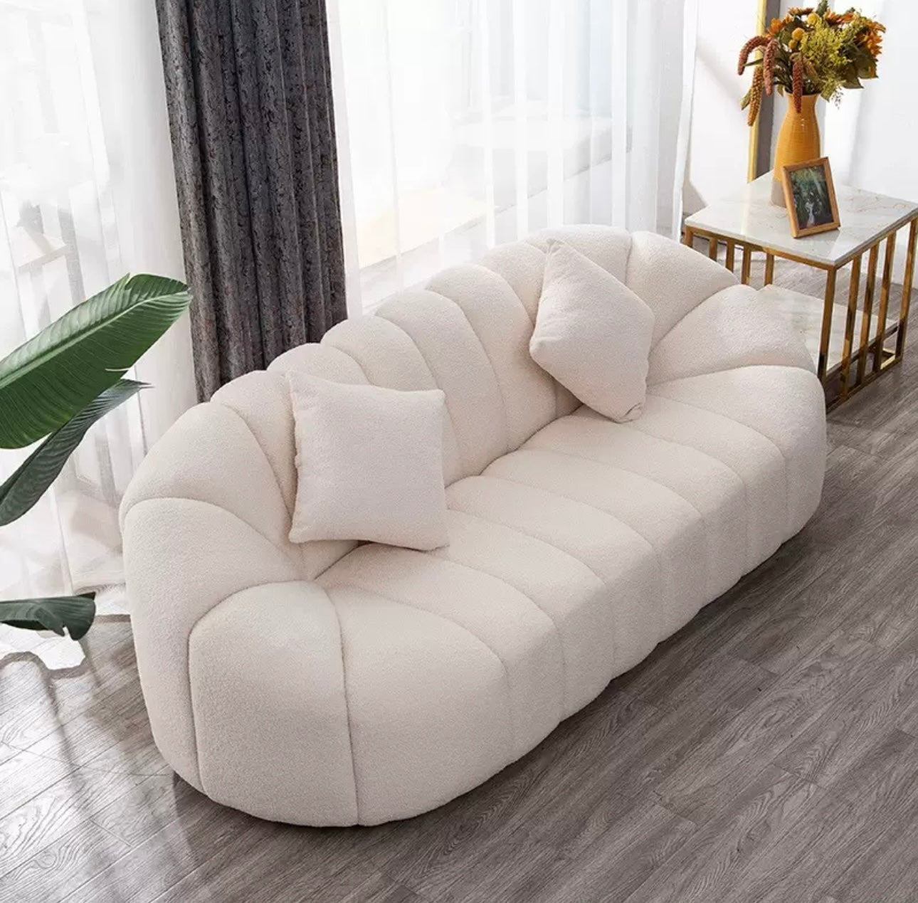 - Luxurious bouclé upholstery to offer a soft, textured, and inviting feel while exuding sophisticated charm.