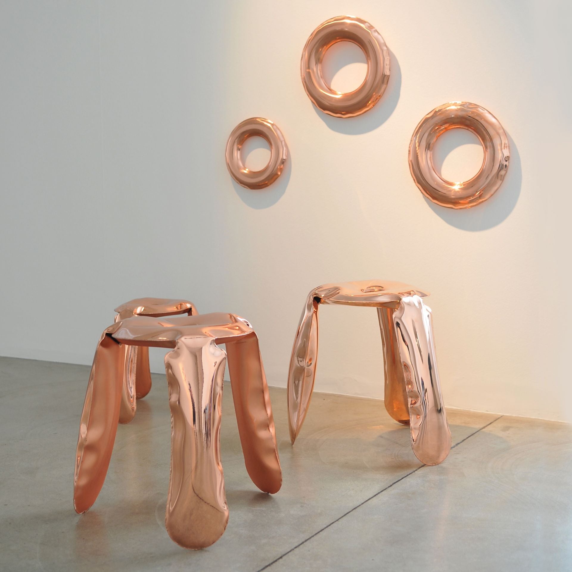 The unique shape el 'playful aspect of this stool designed by Oskar Zieta are the result of a sophisticated and innovative technology developed at ETH Zurich, the famous Swiss polytechnic. FIDU is a technology that enables to weld together a double layer of steel sheets and inflate like a balloon with a powerful jet of air to give a 3D dimension. FIDH allows the mass production of custom shapes. Models made in FIDU are very light, but also very durable. Since its launch on the market, the stool Plopps has been shown in exhibitions around the world and has won several prestigious awards: Red Dot Design Award 2008, German Design Award 2008 and 2009 Forum AID Award.